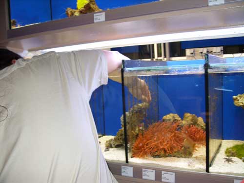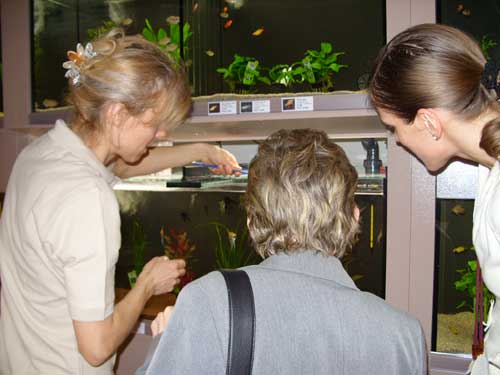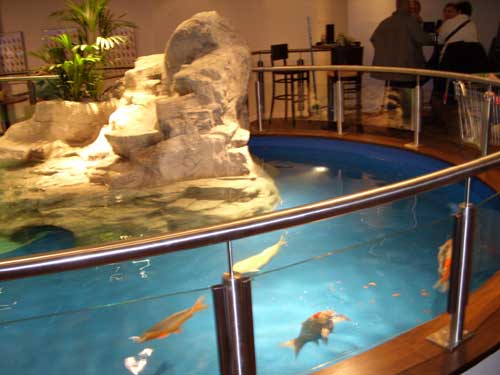 Und wenn man müde wird vor lauter Staunen und an die Scheiben klopfen, kann man sich im Café zwischem dem Aqua-Zoo und den Terrarien etwas zurücklehnen. Doch selbst dort gibt es ein großes Becken, in dem man große Goldfische “erleben” kann.