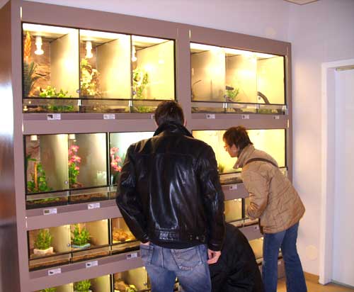 Von Kaninchen über Papageien bis hin zur Königspython und zum Stirnlappenbasilisk -jedes Tier kann beglotzt und teils sogar begrapscht werden.Selbst 40 Jahre alte Landschildkröten müssen diese Tortur über sich ergehen lassen.