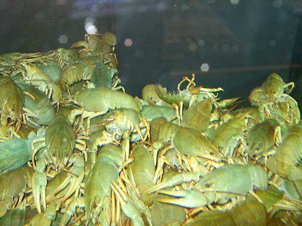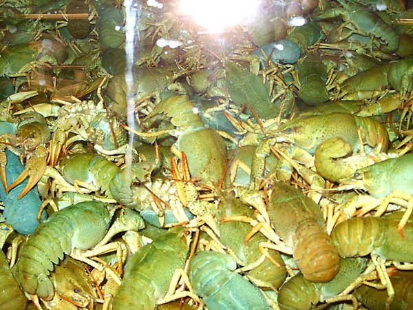 In den Lebendbecken befanden sich Hummer aus Kanada, allesamt hatten abgebrochene Fühler und teils auch nur mehr eine Schere. Kaum auszudenken, welche Strapazen diese armen Geschöpfe schon durchleben mussten, nur um in einem Wiener-„Gourmet“-Restaurant in einem Topf mit kochendem Wasser quallvoll zu verenden. |