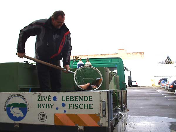 | Eine neue Lieferung lebender Fische aus Polen. Für die armen Tiere ist der Lebendverkauf eine schier nicht enden wollende Tortur. Gefangen aus der Freiheit, brutal umgeladen von einer Kiste in die nächste, der Transport und schließlich das Warten auf den Tod in einem Schaubecken. |